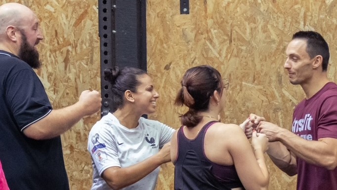 Les Cours CrossFit Team sont des cours de CrossFit que vous réalisez en équipe de 2 ou 3 personnes, vous devez effectuer les exercices en synchro ou chacun votre tour en partageant les répétitions. C’est ludique est pratique pour se faire de nouveaux copains.